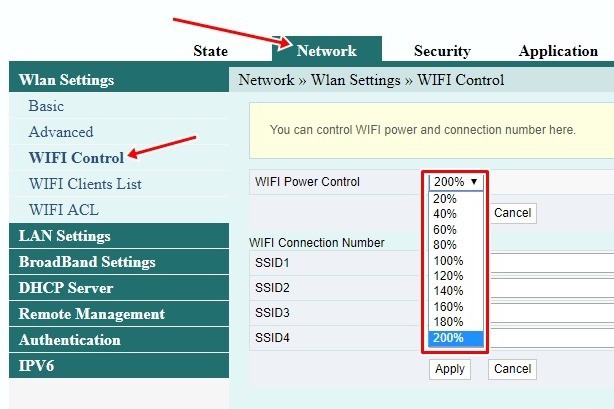 - Setelah itu, ganti WiFi Control Power dari 100% ke 200%, sehingga kekuatan sinyal WiFi akan jauh lebih kencang.