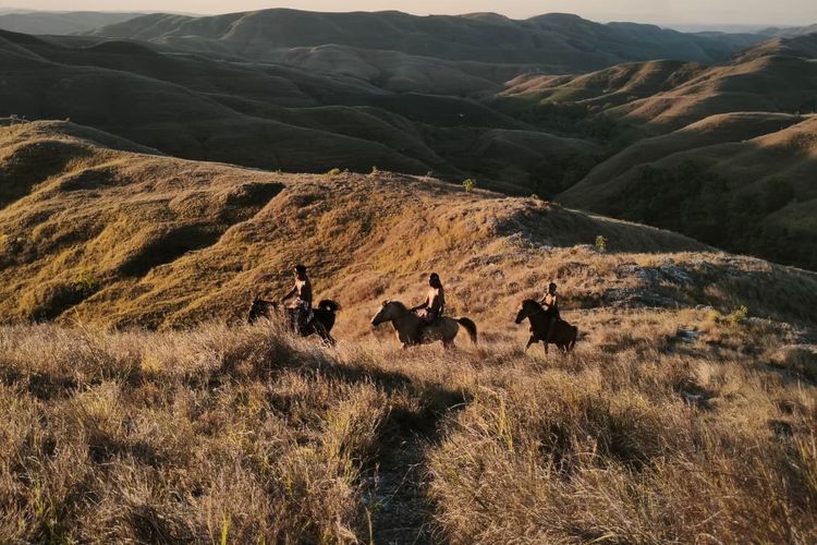 Lokasi selanjutnya adalah Bukit Wairinding, salah satu savana terluas dan terindah di Sumba. Lanskap perbukitan dengan rerumputan hijau kekuningan menjadi latar belakang dramatis untuk pemotretan. Di sini, peserta diajarkan cara mengatur sudut pemotretan agar memaksimalkan penggunaan cahaya matahari. Posisi model, arah gaun yang tertiup angin, serta sudut pemotretan yang tepat membantu menciptakan perpaduan warna antara pakaian dan alam.