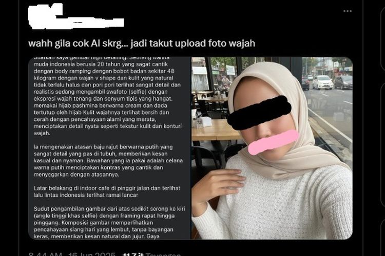 – Sebuah unggahan soal seseorang yang membuat prompt di aplikasi Artificial Intelligence (AI) dengan spesifik dan memunculkan hasil foto yang tampak seperti asli, viral di media sosial X pada Senin (16/6/2025).