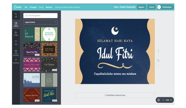Jika Anda tidak bisa mendesain kartu ucapan lebaran, maka Canva bisa membantunya dengan tersedianya berbagai template kartu ucapan lebaran tersebut. Anda juga dapat memodifikasinya jadi lebih menarik.