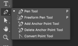 - Aktifkan Pen tool. Pen tool sendiri terletak di urutan bawah daftar tool box Photoshop. Lihat gambar.
