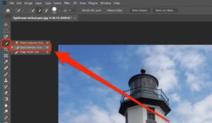 - Setelah itu, aktifkan “Quick Selection Tool”. Caranya cukup mudah yaitu dengan klik icon Quick Selection Tool yang terletak di sebelah kiri IDE Photoshop.