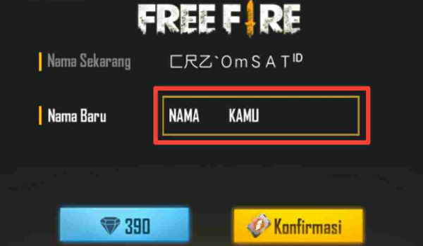 - Log in pada akun FF kamu dan lakukan perubahan nama dengan paste nickname tadi.