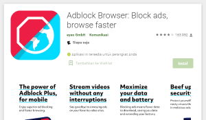 Cara yang ketiga adalah menggunakan aplikasi Adblock Browser yaitu aplikasi khusus yang digunakan untuk memblokir konten yang ada pada halaman internet termasuk juga Youtube.