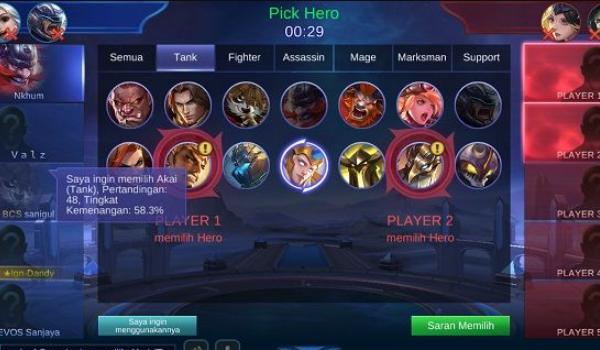 Permainan Mobile Legends adalah permainan tim, yang setiap keputusan perlu kamu diskusikan lebih dulu. Disini silahkan untuk berkomunikasi dulu agar dapat memasukkan hero, yang dapat pemain lain kuasai. Sehingga pemilihan dan kekompakan dapat terjamin.
