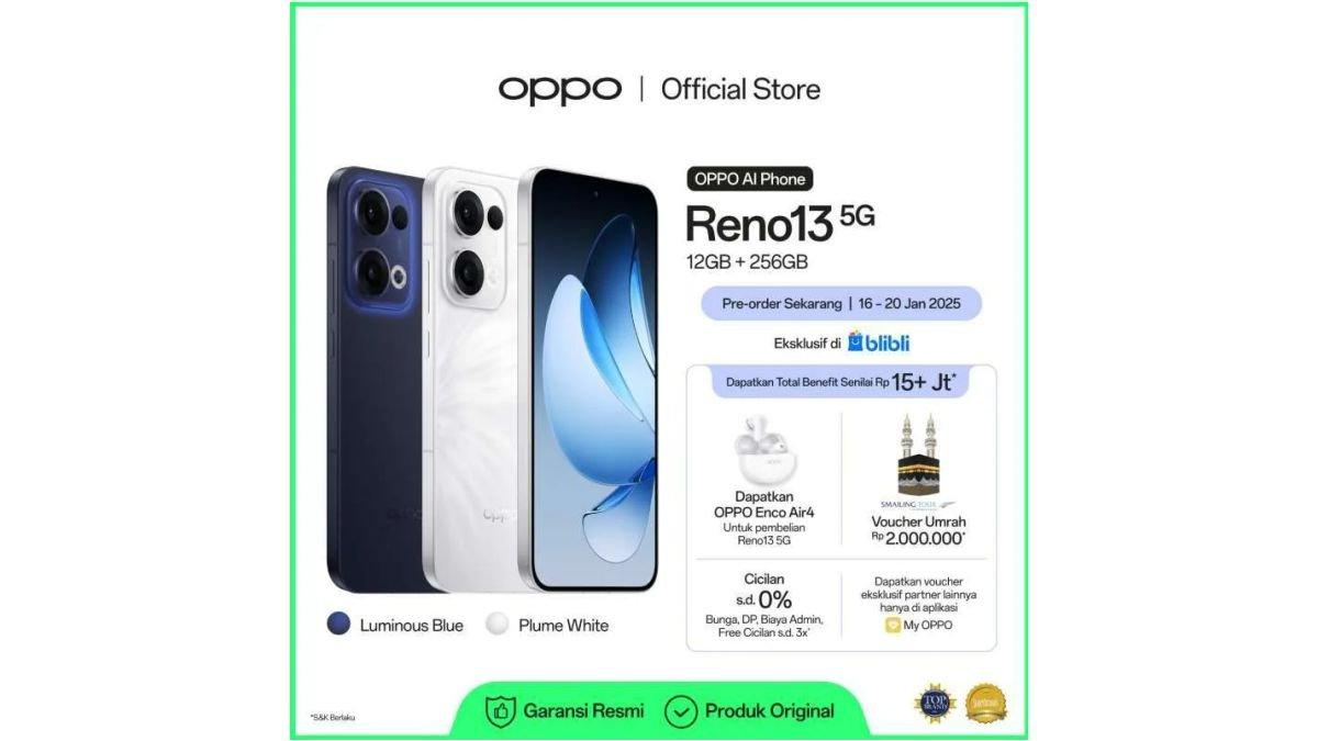 11. OPPO Reno13 5G (12GB/256GB): Rp 8.999.000