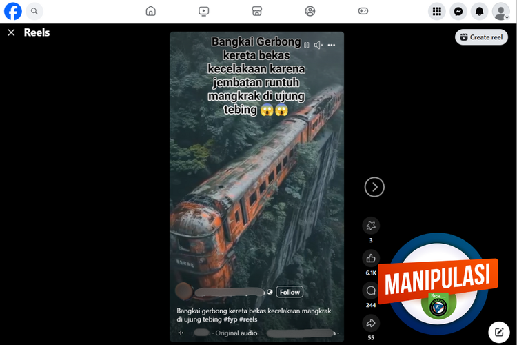 – Sebuah video memperlihatkan rangkaian gerbong kereta yang mangkrak di sebuah jembatan di atas tebing. Video ini beredar di media sosial pada April 2025.
