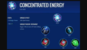Hero mage type assassin seperti Guinevere juga memiliki item yang dapat digunakan untuk menambah darah, yaitu concentrated energy. Kamu akan mendapatkan 20% spell vamp, 700 HP dan 70 magic damage. Untuk recharge, kamu dapat membunuh musuh untuk mendapatkan 10% HP.