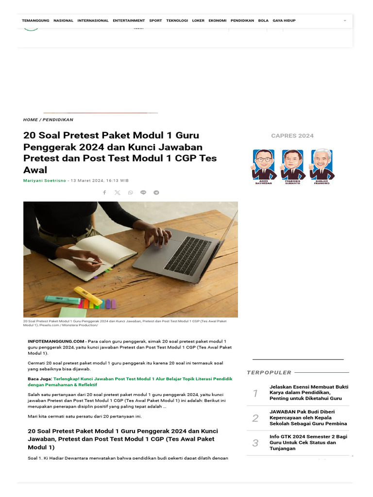 Modul ini dirancang untuk meningkatkan pemahaman guru mengenai perkembangan teknologi dan cara mengintegrasikannya dalam proses pembelajaran. Dalam modul ini, peserta akan diuji melalui pretest yang bertujuan menilai pemahaman awal mereka terhadap konsep-konsep tersebut.