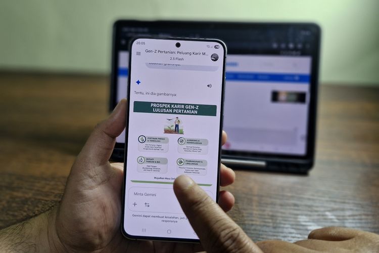 Sebagai contoh, ZONA GADGET memberikan prompt “Pekerjaan apa yang cocok untuk fresh graduate Gen-Z sarjana pertanian? Rangkum dalam bentuk grafis”. Gemini langsung melakukan riset mendalam dan memberikan jawaban yang disajikan dalam format grafis.