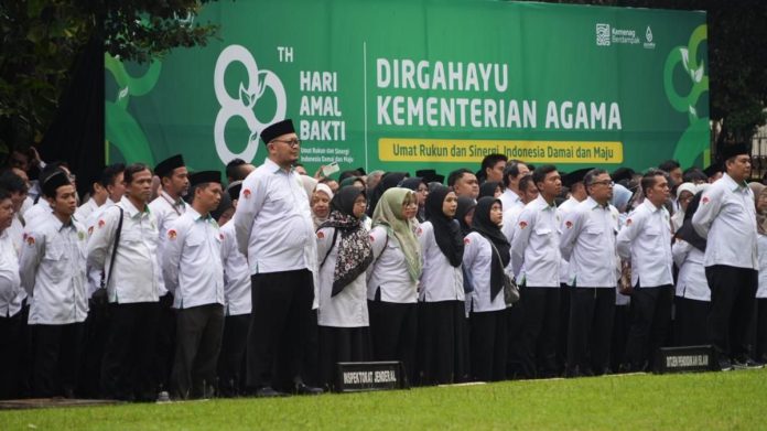 Menteri Agama Nasaruddin Umar menyampaikan pesan penting mengenai tantangan yang dihadapi umat beragama di era perubahan yang cepat, sulit diprediksi, kompleks, dan penuh ketidakpastian. Dalam upacara peringatan Hari Amal Bakti (HAB) ke-80 di halaman kantor Kementerian Agama (Kemenag), Jakarta, Sabtu (3/1/2026), ia menekankan bahwa jajaran Kemenag tidak boleh hanya menjadi penonton, tetapi harus mampu memberikan kontribusi dalam pengembangan teknologi seperti Artificial Intelligence (AI).