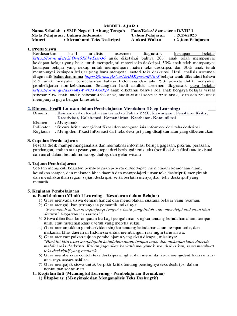 - Aktivitas Interaktif dan Kolaboratif: Modul mencakup diskusi, presentasi, proyek, dan studi kasus yang melibatkan siswa secara aktif dan mendorong kolaborasi.