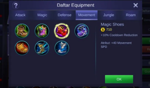 Ini pada intinya menguntungkan dalam perpindahan atau kecepatan gerak hero. Jadi gunakan dengan bijak untuk meraih kemenangan. Misalnya saja Magic Shoes, Rapid Boots dan banyak lagi lainnya.