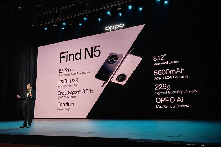 “Oppo Find N5 merupakan smartphone lipat dengan ketebalan terkecil di planet bumi. Alat ini bahkan lebih ramping daripada dua lembar mata uang logam serta buku paspor standar 48 halaman,” jelas Chief Marketing Officer Oppo Indonesia, Patrick Owen saat menghadiri launching Oppo Find N5 di Tanah Air yang berlangsung di Ciputra Artpreneur, Jakarta Selatan, pada hari Rabu tanggal 30 April 2025.