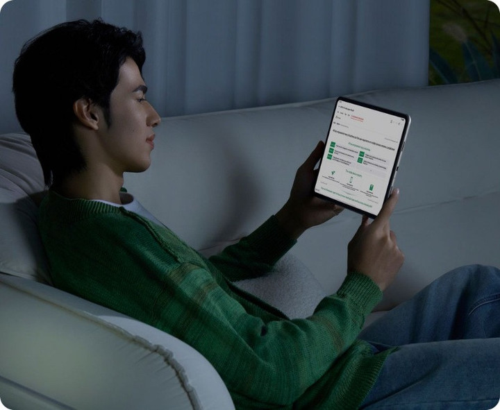 Dari pendahulunya. Ketika dibuka, layar memiliki ukuran 8,12 inci dengan resolusi QXGA+ sebesar 2480 x 2248 piksel dan kecerahan mencapai 2100 nits.