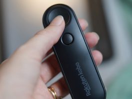 Dari segi fisik, remote ini terbuat dari plastik yang ringan, dengan bentuk yang sedikit melengkung, sehingga nyaman digenggam. Ukurannya yang kurang dari 4 inci dan berat sekitar 36 gram membuatnya mudah disimpan di saku. Tombol-tombolnya mudah ditekan tanpa terasa kaku. Setelah beberapa saat menggunakannya, saya bahkan tidak lagi memikirkan remote ini, yang merupakan sesuatu yang saya inginkan saat sudah memasuki bab enam dalam buku.