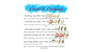 Memasuki level 5, sobat Zona Gadget Indonesia akan diajak untuk memasak resep makanan yang lebih rumit. Pada level ini, pemain bisa memasak omelette, garden codfish pizza, pork sandwich, soup of courage, dan crispy potato pork burger. Berikut adalah resep makanan Laplace M level 5 tersebut.