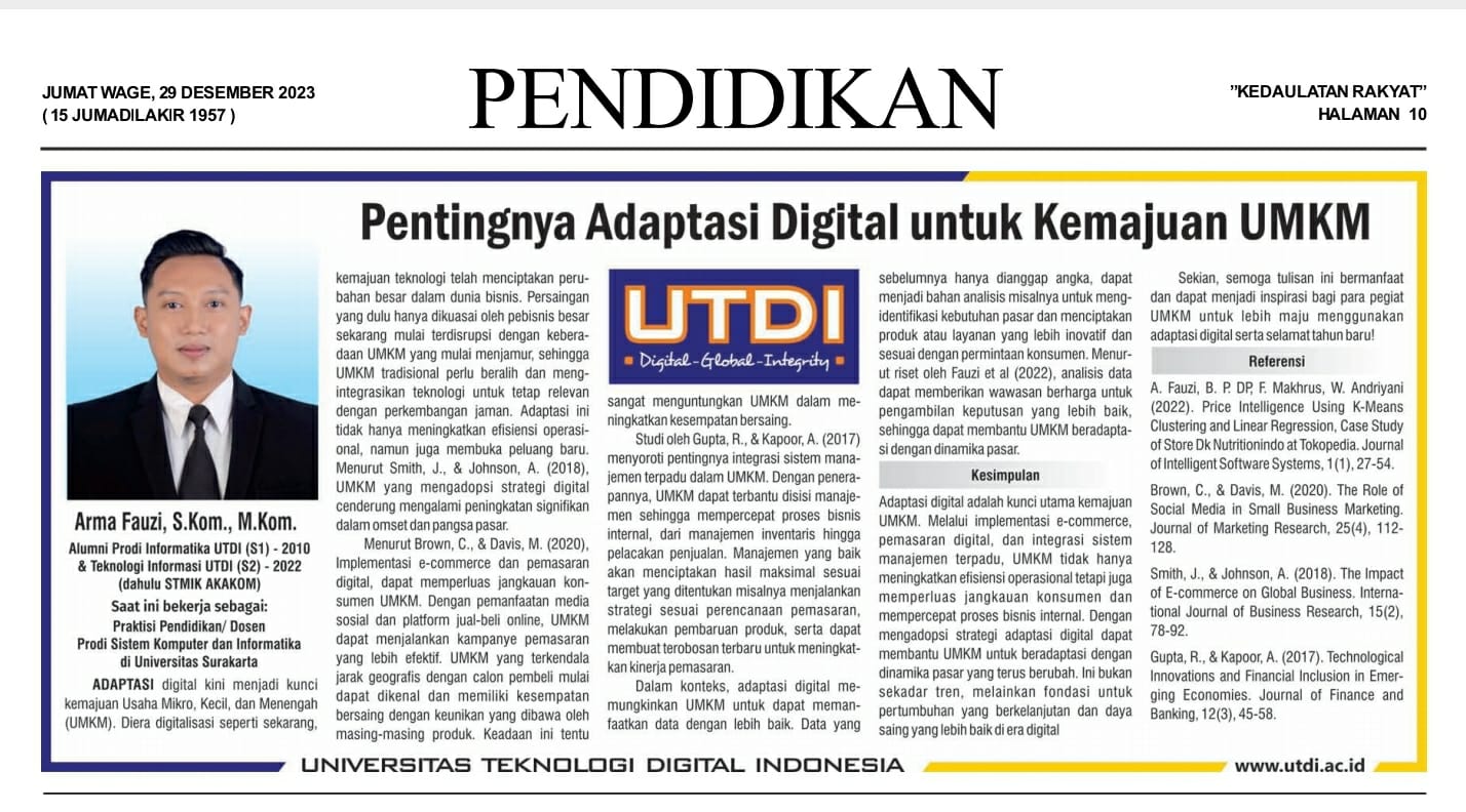 Kendala utama dalam adopsi teknologi seperti Artificial Intelligence (AI) adalah keterbatasan infrastruktur digital, akses modal, dan literasi teknologi. Hal ini membuat pelatihan dan pendidikan menjadi sangat penting agar UMKM dapat meningkatkan daya saing dan efisiensi operasional mereka di era digital.