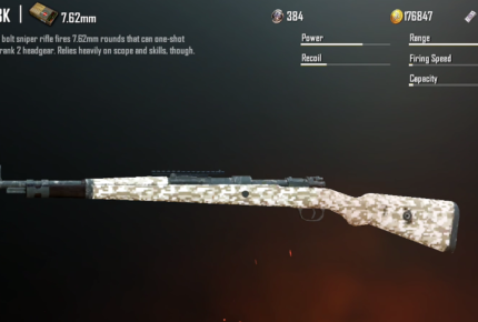 Kar98K Senjata yang konon populer digunakan oleh tentara Nazi pada perang dunia ke-2. Dikenal mematikan di kelas Sniper Rifle dan bisa kita temukan ketika looting di atap gedung atau bangunan terbuka.