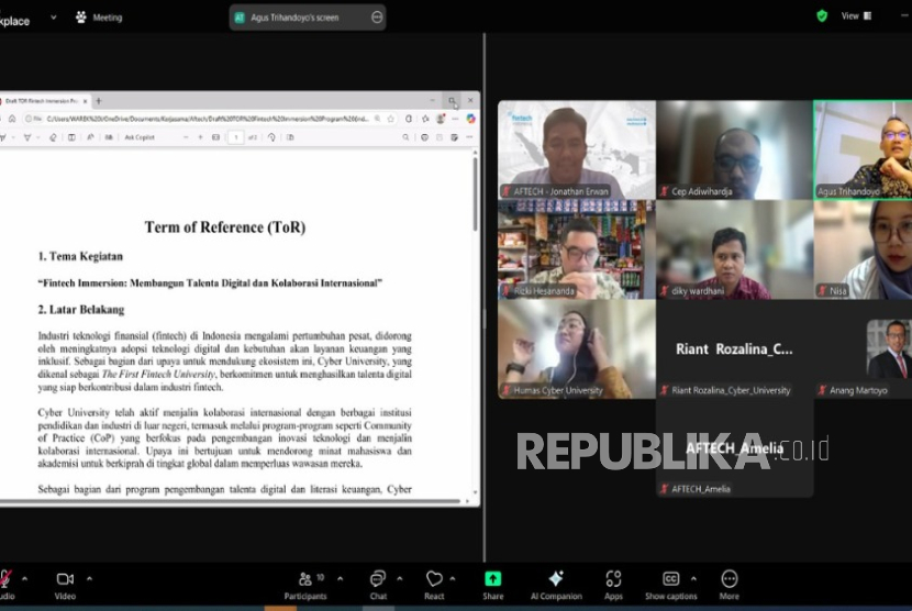 Rapat ini diketuai oleh Agus Trihandoyo sebagai Wakil Rektor Bidang Akademik dari Cyber University dan Jonathan Erwan Pratama sebagai Marketing Communications Associate dari Aftech. Mereka membicarakan tentang rancangan acara, penyisipan konten pendidikan, serta jenis kerjasama antara dunia usaha dan institusi akademik sesuai dengan permintaan saat ini dalam bidang tersebut.