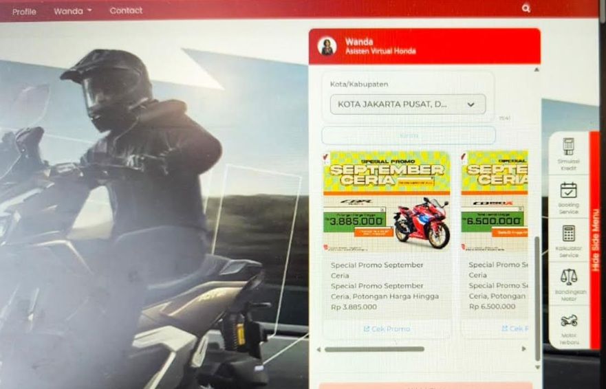 Baik melalui aplikasi, website, maupun WhatsApp, semua pertanyaan akan dijawab secara cepat dan akurat oleh sistem Wanda AI. Hal ini membuat pengalaman berinteraksi dengan Honda menjadi lebih efisien dan personal.