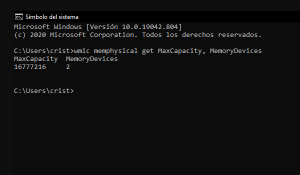 - Lanjutkan dengan mengetikan “wmic memphysical get MaxCapacity, MemoryDevices”.